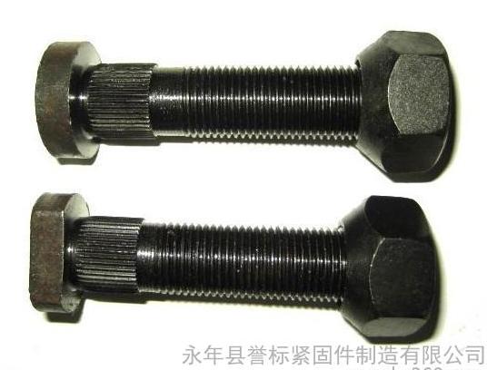 另外有特殊用處的:T形槽螺栓用,機床夾具上用的多,形狀特殊,頭部兩側要切掉.地腳螺栓用于機器和地面連接固定的,有很多種形狀.U形螺栓,如前述.等等.