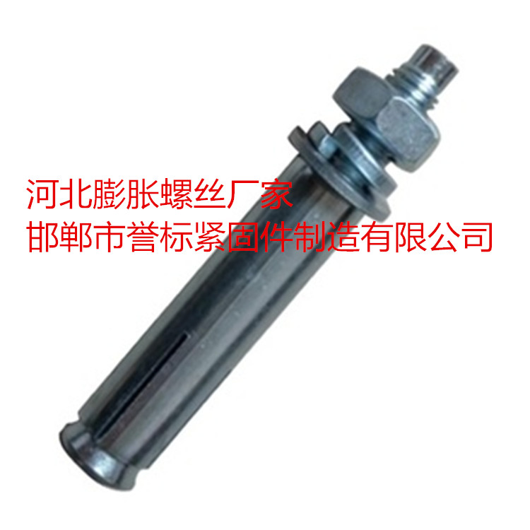 膨脹螺栓由沉頭螺栓、脹管、平墊圈、彈簧墊和六角螺母組成。