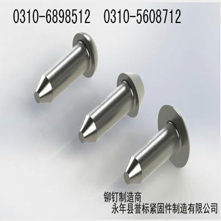 另外還有對插鉚釘,比較特殊。分為兩部分,較粗的一段帶帽桿體中有孔,與較細的另一段帶帽桿體是過盈配合。鉚接時,將細桿打入粗桿即可。